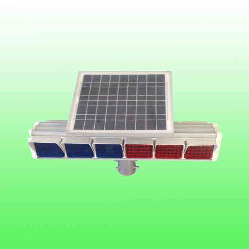.1太阳能六格爆闪灯外壳由铝合金型材组合,表面塑料喷漆,外观精美不易被腐蚀,长时间使用不会出现锈迹。2.爆闪灯采用密封结构组合式灯组,整灯的各组件相连处都进行密封处理,高性能防护,等级大于IP53,有效防雨、防尘入侵。